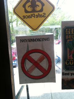 4. We stopped by a coffee shop after Z had gotten a shot and therefor had on a bandaid. He was concerned when he saw this sign and said”Oh no, they don’t allow any bandaids here!”