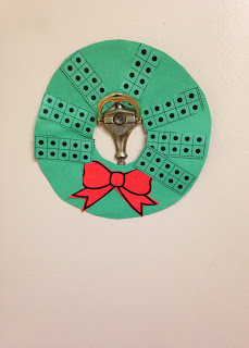 Z insisted we hang this wreath on the door. The assignment was to cut and glue 70 dots.