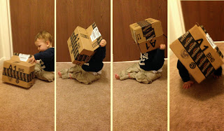 I love the pictures of him in the box. Too cute!