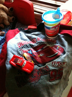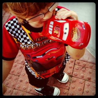Then next day a friend of ours offered us 4 tickets to see Cars 2 at 9:00 am on opening day! Well, we couldn’t pass that up, so yesterday we got up early and went to the theater at 8:00. Z had all his Lightning McQueen fan gear from his sippy cup down to his underwear.