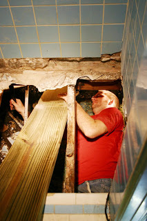 Another aspect of the house that I never really had the chance to enjoy is the utility sink. J installed it at the very last minute. There is a funny story behind this counter top though. J being the resourceful little pack rat that he is used our old kitchen sink along with some wood he salvaged at a junk yard. He was supposed to be getting rid of stuff at the dump, but ended up coming back with a bunch of wood that was taken out of a strip club. When J showed me his beautiful craftsmanship he informed me that it was reclaimed from the cabaret. Reclaimed and redeemed I added. He agreed.
