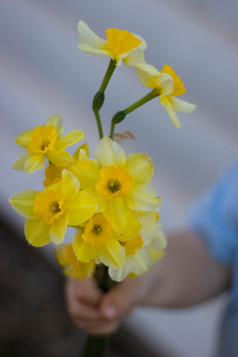 A couple of weeks ago when it wasn’t 50 degrees, the kids and I went outside to get some flowers and sunshine.