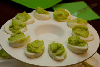 3. For the meal we had a tasty baked ham, with green deviled eggs, and many other sides.