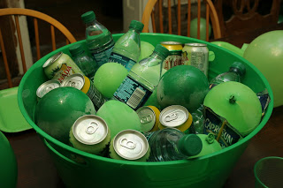 4. I filled up green water balloons in various sizes to use in place of ice to keep the drinks cool.*
