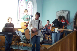 The worship team on our first trip to England. J is in the middle, that’s one of my friends on the far right before she was married to who her husband who is on the drums, and on the far right (you can barely see him) is my friend Amy’s husband.