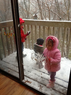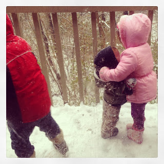 They like to throw snowballs at me and I just shriek and smile from behind the glass in the warmth of the apartment.