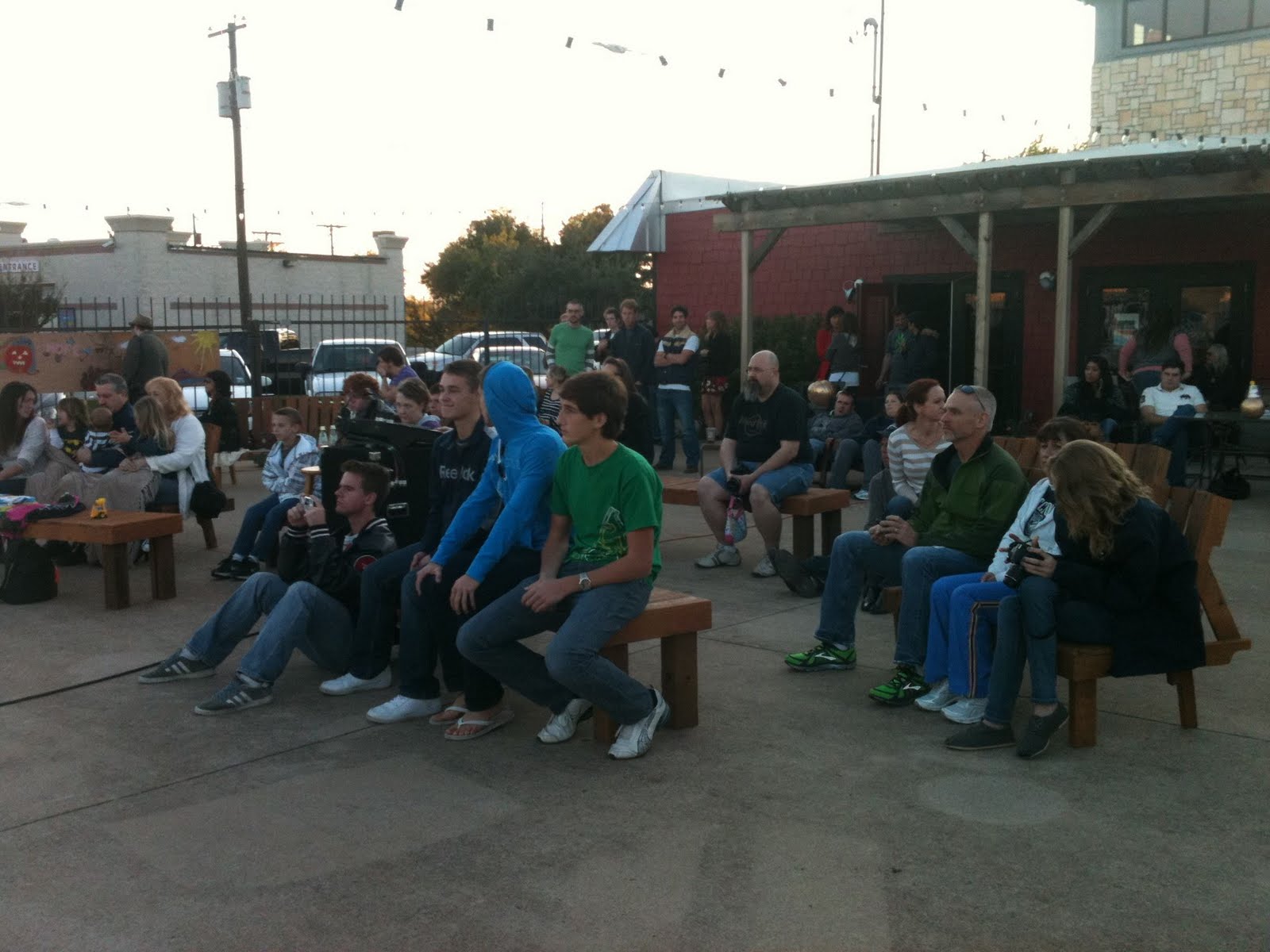 Lastly I told my husband that he never ceases to amaze and he begged to differ so I elaborated by saying your carpentry skills never cease to amaze me. When the coffee shop needed a stage and outdoor seating area for the art festival they had a non existent budget and very little time to work, but J took the bull by the horns and built these benches and chairs using entirely freecycled wood from Craig’s list.