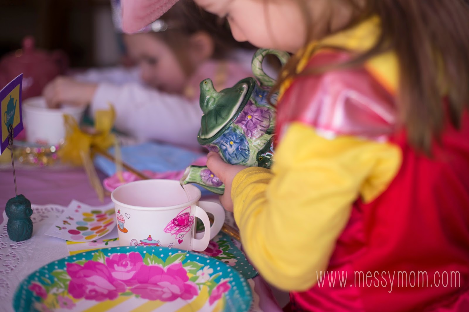 Yesterday I shared the tea party decor, but that’s not what really makes the party. The party is all about the kids and watching their faces light up as they become royal princesses privileged to have the fanciest of parties! I LOVED seeing them enjoy all of the activities I had worked so hard on. You never know what kids are going to get excited about and they are not shy about telling you one way or the other. So I was prepared for any reaction, but what I got was sheer joy! Here is what the afternoon entailed-