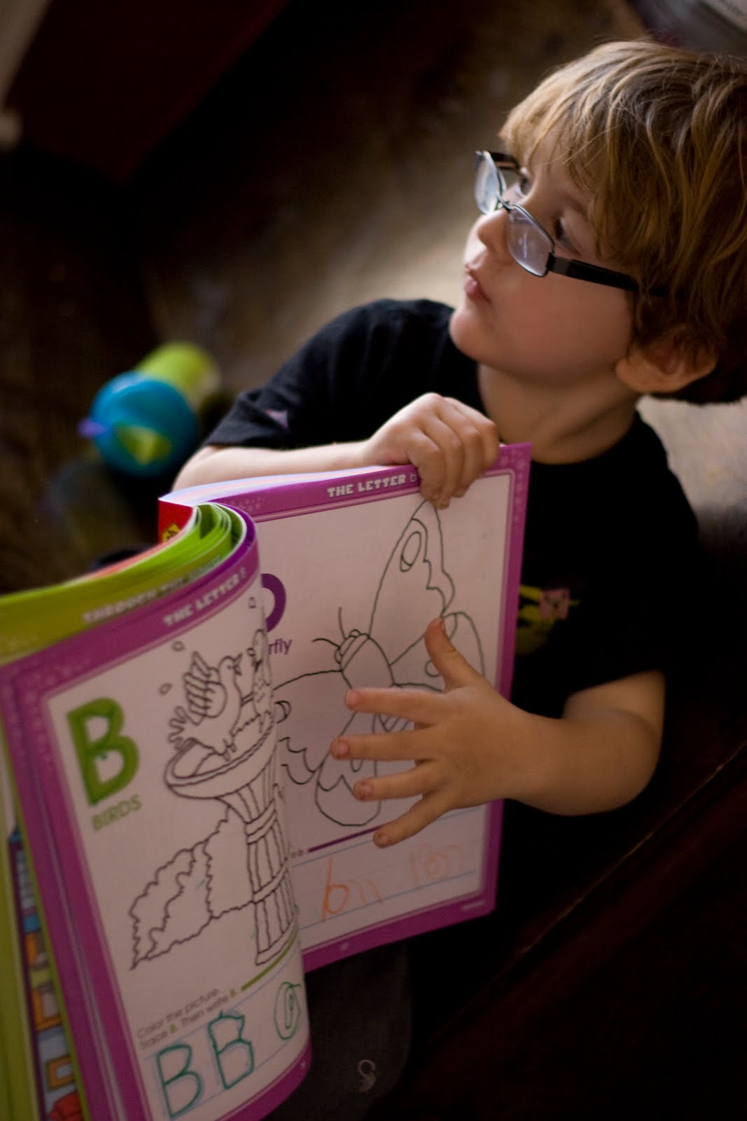 I am glad to have started the lessons at home with him though. It gives us a chance to have mommy son time, which I know makes him feel special. After our lesson he gets to put a sticker on the calendar for that day. We usually do this a couple times a week.